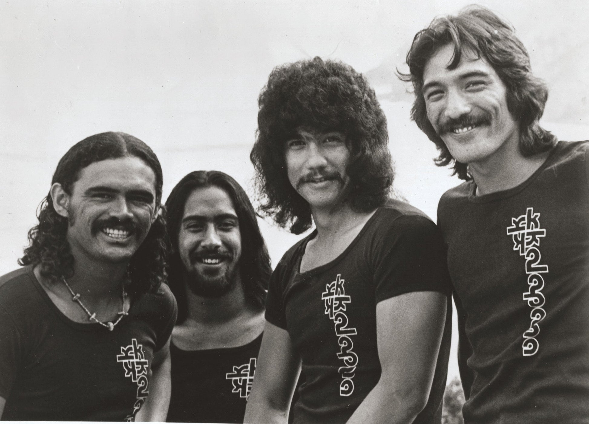 カラパナの1970年代のクラシックTシャツ。バンドのヴィンテージ写真によく登場します。ホノルルでプリントされ、アメリカ製です。